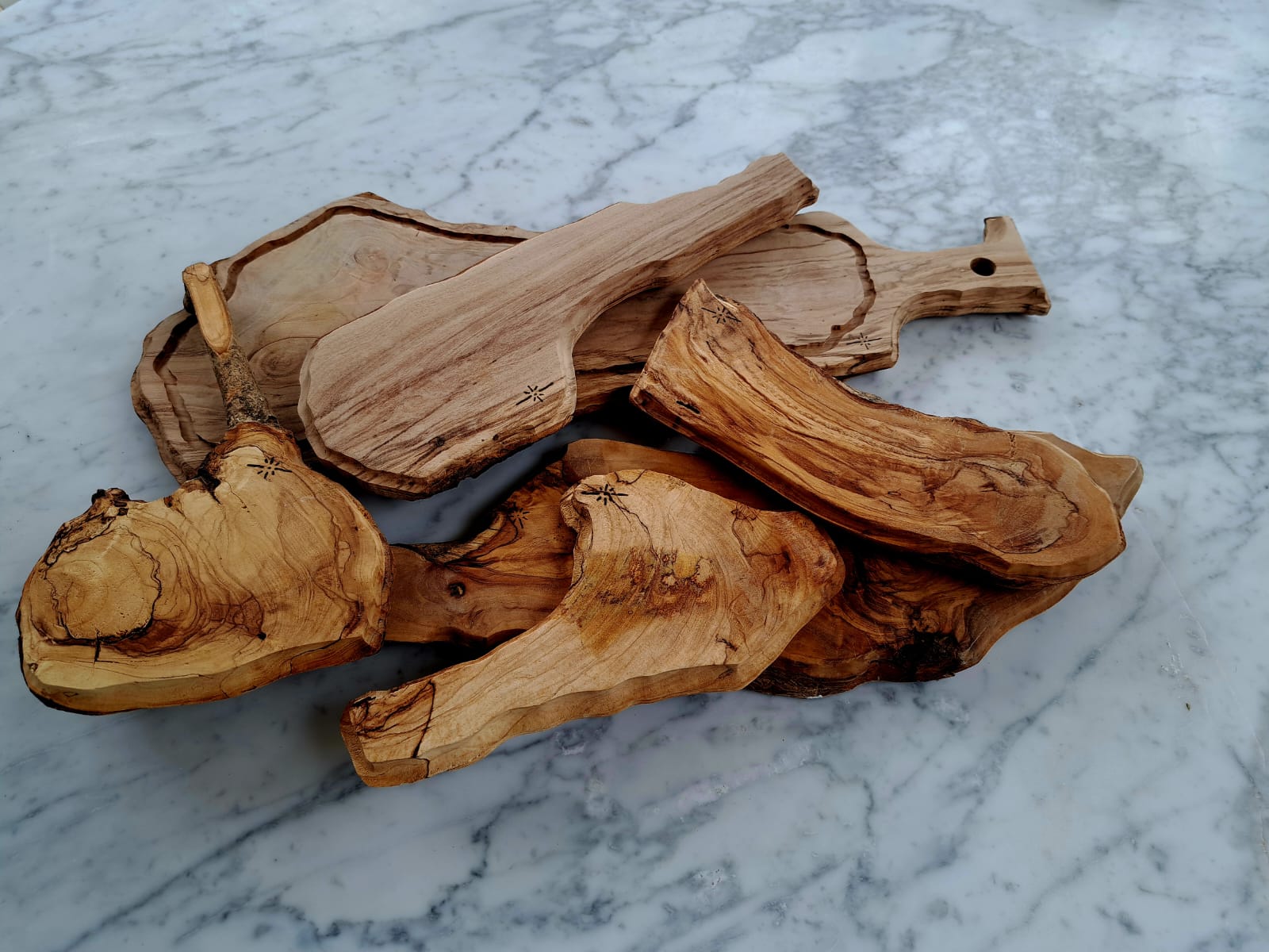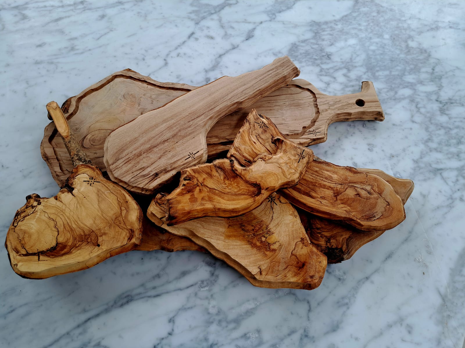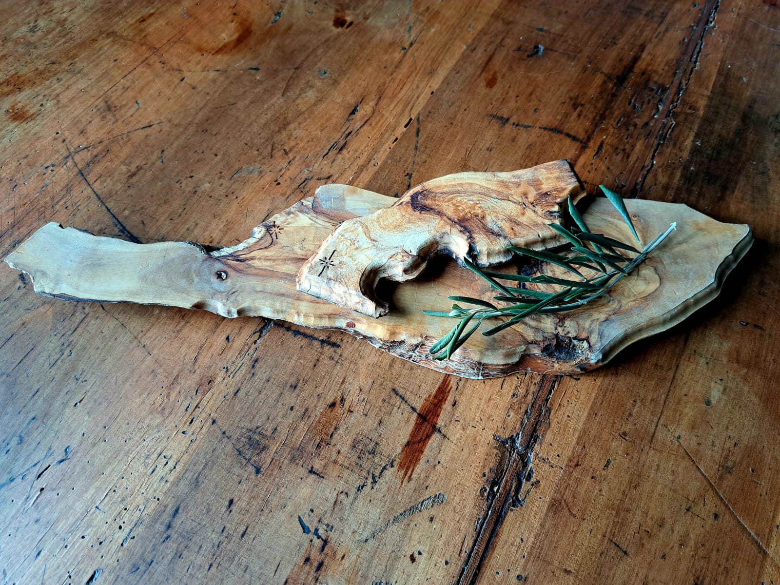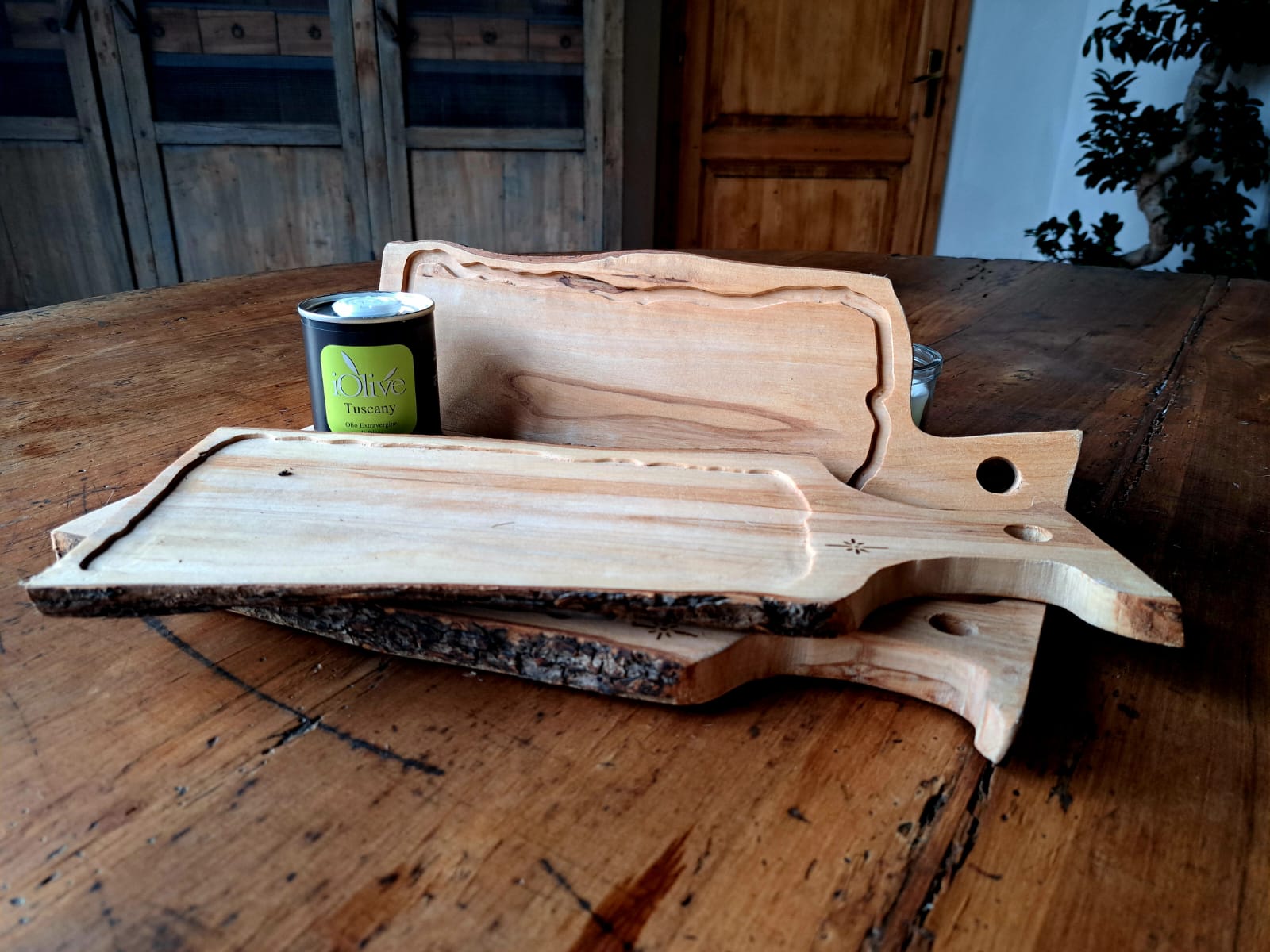 Il legno di olivo, noto per la sua eccezionale resistenza, le venature calde e il profumo naturale, rende ogni tagliere non solo funzionale, ma anche esteticamente prezioso.